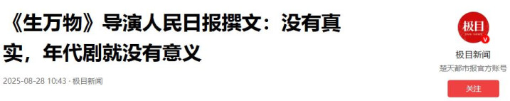 《生万物》导演人民日报撰文:没有真实,年代剧就没有意义.2025-08-28 10:43·极目新闻.